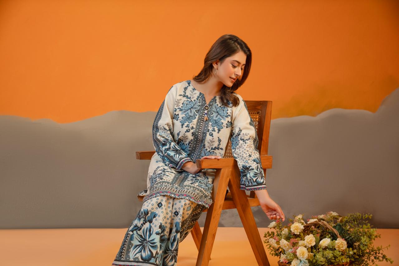 Crafted from premium lightweight lawn, this outfit offers breathability and comfort, making it ideal for the warm season. The fabric’s soft texture and elegant fall give the outfit its refined appearance while keeping you cool and composed. Digital printing techniques preserve the brightness and intricacy of the blue motifs, ensuring lasting vibrance with every wear.